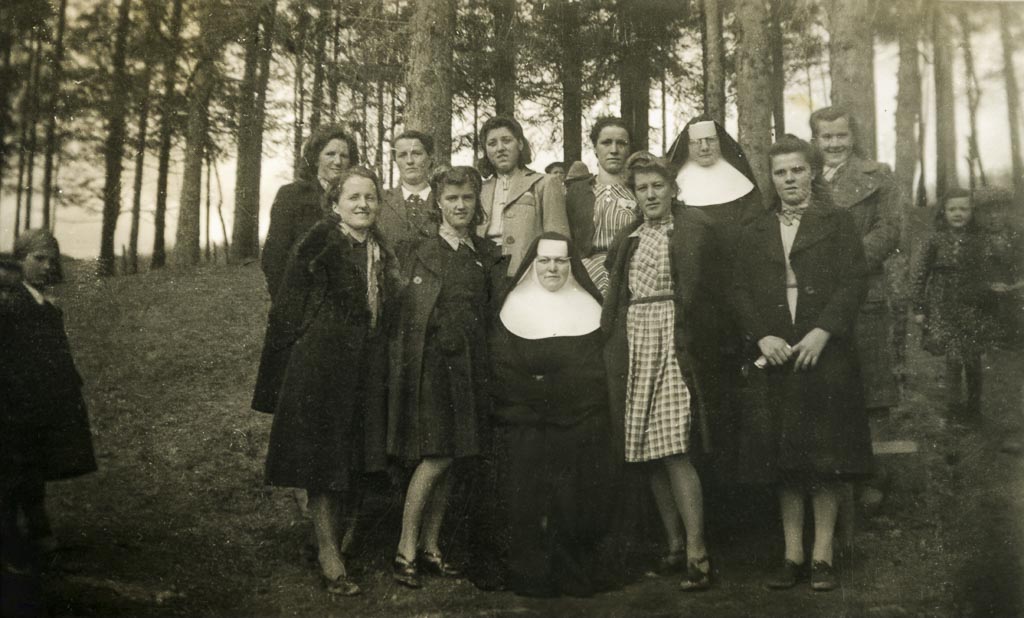 Nuna v sredini spodaj je teta od moje mame Marija Klinar Zefa verjetno predstojnica ursulink. Ursulinke so so po vojni preselile v vas Sv. Duh pri Skofji Loki in to samostan, ki je znan po tem, da so tam snemali.film Dolina miru