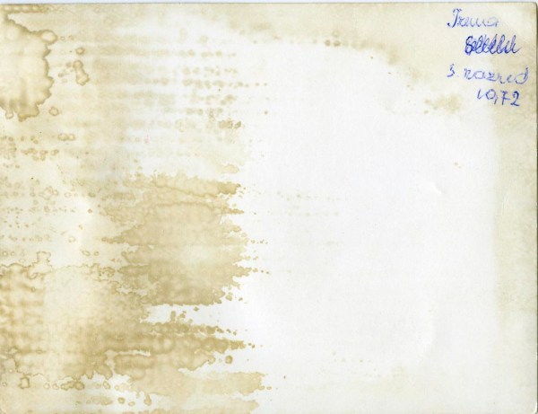 - Prva z leve, ki gleda v fotografa je Irena Ravšelj, za njo je Karmen Lukek. Deklica v pisani jopici, ki jo vidimo v hrbet, je Irena Peteh. Za njo je Franci Brecelj. Zadaj pri oknu sta Tatjana Modic in učiteljica Ida Zorman. Manjši deček za ptičjo hišico je verjetno Peter Mekina. Levo v pisanem puloverju je Mito Kranjc, poleg njega v temnem je Milan Mahnič. Učiteljica v plašču je Zmaga Križman in pred njo deček z očali, slikan v hrbet, je Miran Jernejčič. Skrajno na desni v svetlem puloverju je Toni Grbec. Ostalih ne prepoznamo.