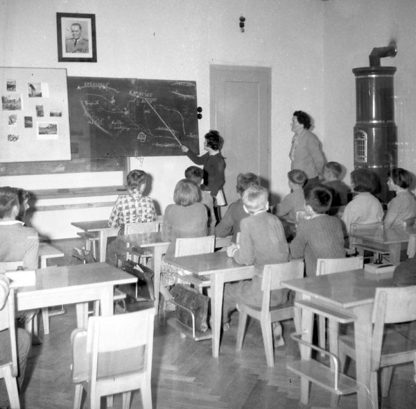 Tako je izgledal pouk pri predmetu Spoznavanje narave in družbe v šoli v Begunjah leta 1961.