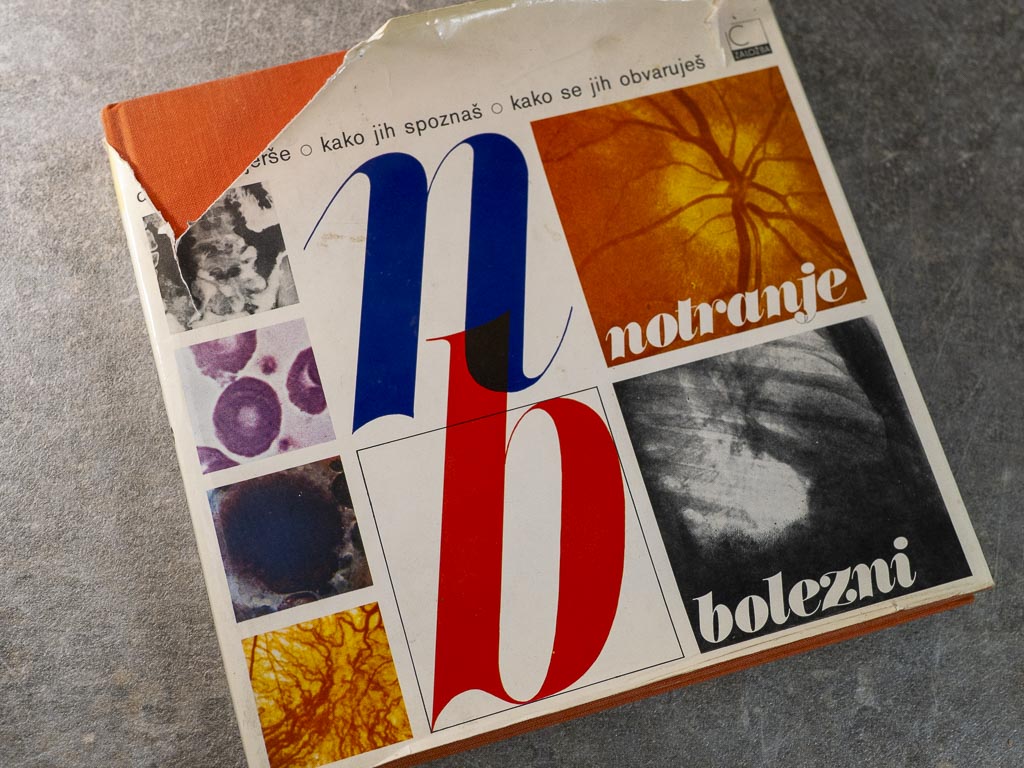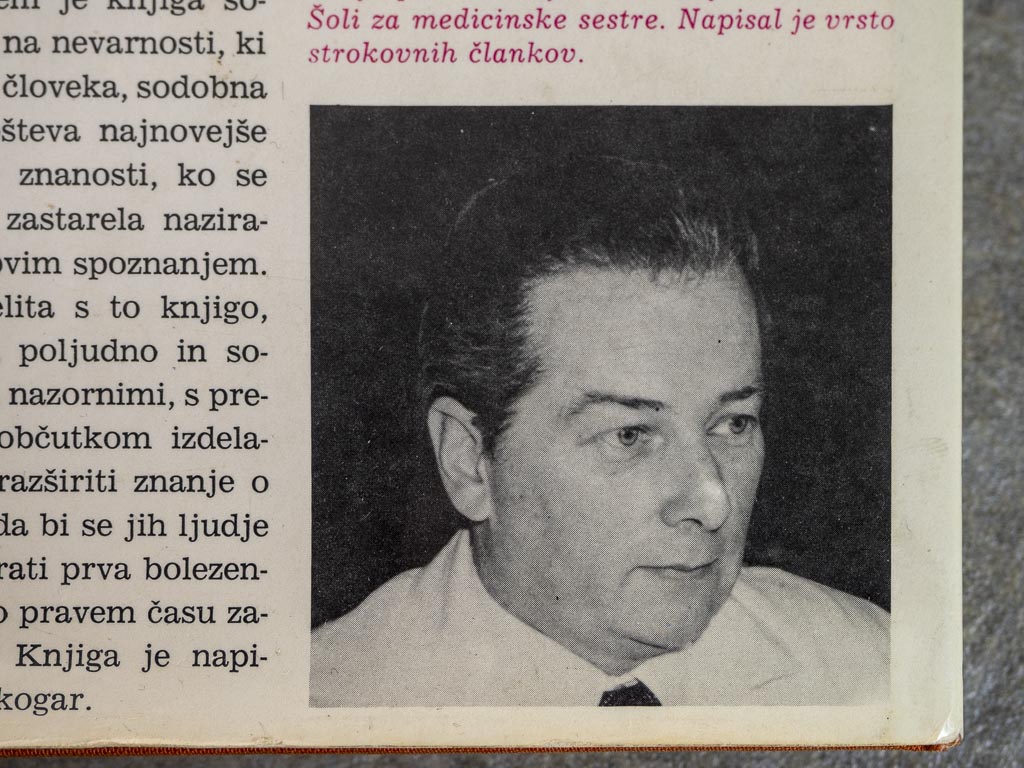 Fotografija dr. Marjana Jeršeta na ovitku njegove knjige Notranje bolezni … Prav takega se spominjam.