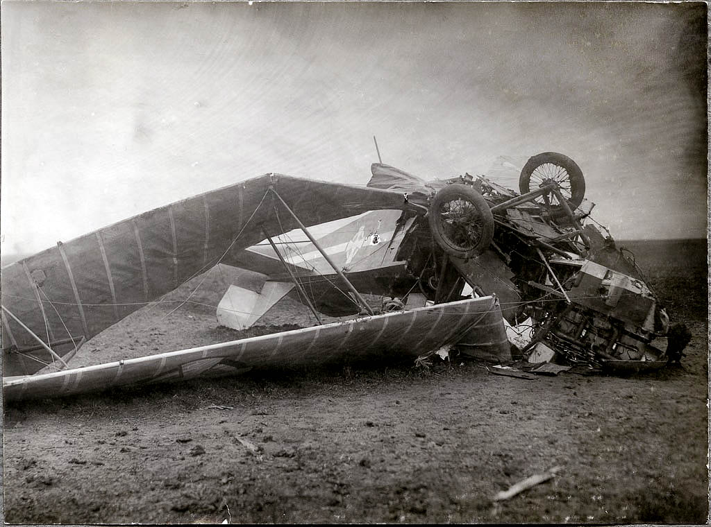 Žal v Knapovem albumu ni fotografije njegove Avie. Slika nam da vpogled v ostanke strmoglavljenega leta. Zgolj po čudežu je kateri od pilotov preživel.