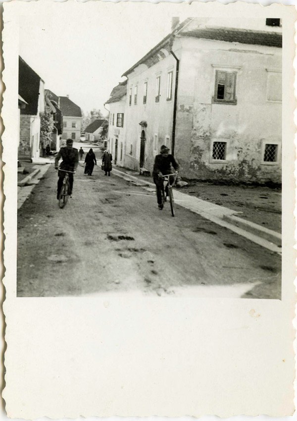 Na sliki sta dva italijanska vojaka Bersaljerja na Velki gasi na vojaških kolesih Bianchi 25/34. Neznani fotograf ju je slikal ravno, ko sta prešla Kunčavo hišo, ko sta se peljala navkreber proti cerkvi. Za njima so na sliki Cjrknčanke, mame oblečene po najnovejši in trajni modi, ko gredo po svojih opravkih, pred njimi pa je obris moškega, ki ob povečavi fotografije močno spominja na še enega kolesarja. Kaj sta počela s kolesoma in zakaj ju je fotograf ujel v svojo škatlico ne vemo, lahko pa domnevamo, da sta se iz dolgočasja pomerila v vožnji v klanec in je moški skrajno levo mogoče starter. Iz slike je razvidno tudi to, da je bila Velika gasa kljub makadamu lepo urejena, saj se levo in desno ob cesti vidijo kamniti zaključki in verjetno betoniran jarek za odtok deževnice, črni madeži pa so bodisi volovske štempilke ali luknje na cesti, ki jim danes ljubkovalno pravimo ležeče policajke.