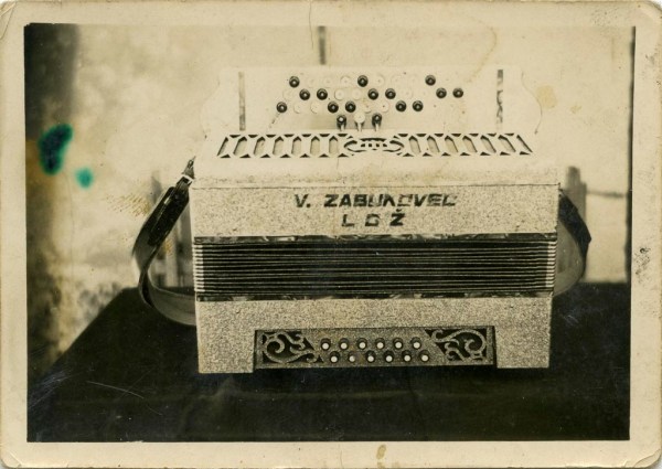 Na zadnji strani te fotografije se je ohranil odtis dela žiga, ki ga je uporabljal pri izdelavi harmonik.