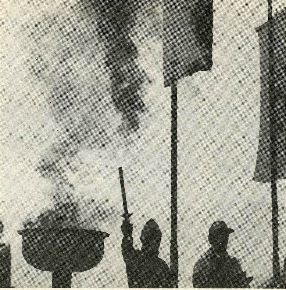 Pred to pomembno slovesnostjo je član organizacijskega odbora Rado Ponikvar dobil nalogo, da pripravi gorišče za ogenj in primeren podstavek, ki so ga pred prireditvijo postavili pred Osnovno šolo v Novi vasi. Stane Korenjak je bil zadolžen za nabavo goriva, ki naj bi se hitro vnelo in dovolj dolgo gorelo brez motečega dima in smradu. V tovarni Fenolit Borovnica je Stane našel primerno snov, ki je lepo gorela, a žal tudi hitro pogorela. Neuporabno torej. Predsednik organizatorjev Kranjc, znan po hitrih in učinkovitih odločitvah, je dal komando: “Žaganje, prepojeno z nafto, bomo prižgali, pa bo dovolj dolgo gorelo!” Še danes se na nejasni črno-beli fotografiji vidi, da je lepo gorelo, se močno kadilo, vonj si po lahko zamišljamo. Ekologi in zeleni takrat še niso bili organizirani. V Brestovem obzorniku 2/1984 sem izbrskal, da je olimpijski ogenj v Novi vasi prižgal starosta notranjskih smučarskih tekačev in nekdanji reprezentant France Kandare iz Loške doline. Bakla – plamenica je ostala na Blokah in ima danes častno mesto v Muzeju bloškega smučarja v Novi vasi. V Sarajevu je olimpijski ogenj s tako baklo prižgala jugoslovanska reprezentantka – umetnostna drsalka Sanda Dubravčić iz Hrvaške. Bila je prva ženska v zgodovini olimpijskih iger, ki ji je pripadla taka čast.