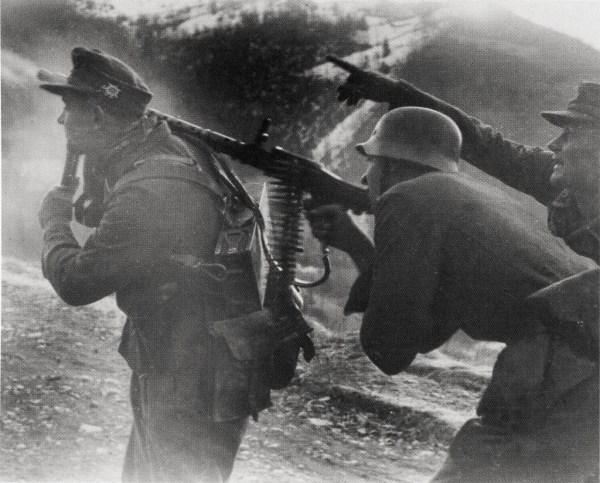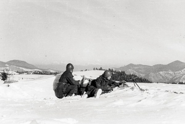 Vojaki nemške 188. gorske divizije med prodorom v Trnovski gozd februarja 1944.