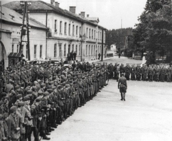 N. N. Udarni bataljon Slovenskega domobranstva na Rakeku pred odhodom v akcijo poleti 1944.