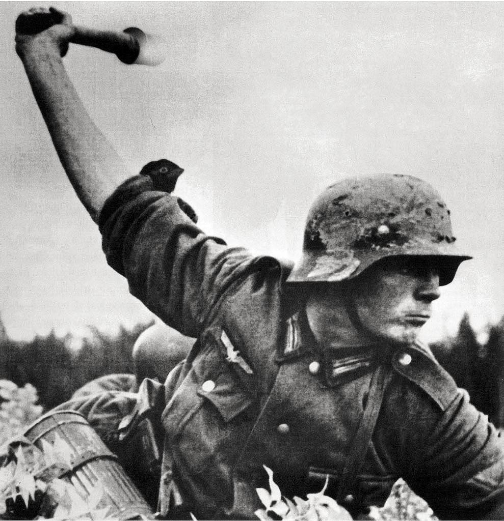 Posnetek nemškega vojaka v napadu nekje na fronti v Evropi med drugo svetovno vojno.