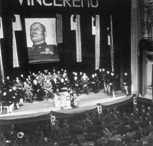 Proslava obletnice borbenih fašijev v operi v Ljubljani 21. marca 1943. Foto: Miran Pavlin.