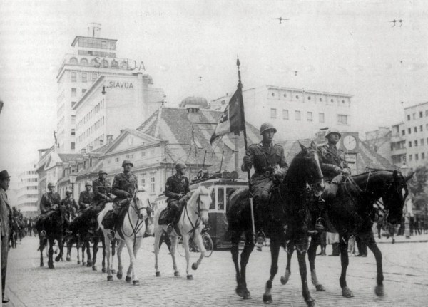 Topništvo sardinskih grenadirjev na Tyrševi cesti v Ljubljani 26. maja 1941. Foto Miran Pavlin.