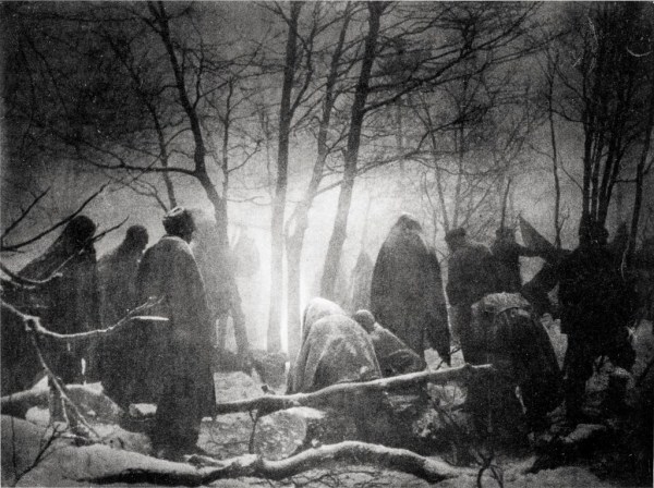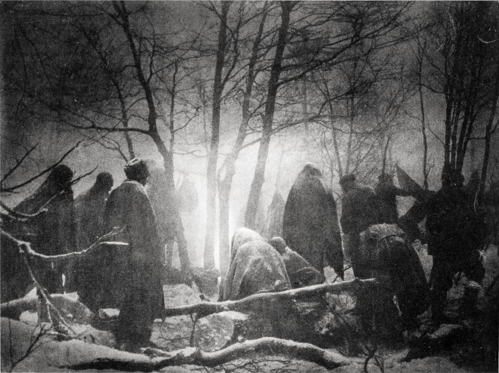 Ob partizanskem ognju, zima 1944 – 45, papir negativ iz leta 1949. Foto Janez Marenčič.