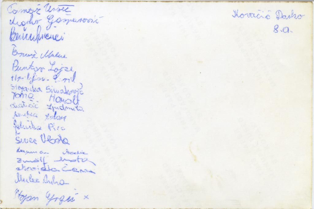 V tem šolskem letu jih je zaradi selitve v Begunje, zapustila sošolka Smiljana Tekavec. Na sliki se jim je poleg razredničarke Danice Štefančič pridružila mlada učiteljica matematike Antonija Meden. To šolsko leto je bilo njeno prvo v vlogi učiteljice matematike. Tako starejši učiteljski kolegi, z ravnateljem na čelu, kot tudi učenci so jo zelo dobro sprejeli. Razred je bil zelo miren in neproblematičen. Puberteta jim ni povzročala večjih težav. Pri podajanju učne snovi se je opirala na učni sistem profesorja didaktike. Učno snov najprej malo razložiš, nato pa naj učenci sami v delovnem zvezku delajo in raziskujejo. Ona je nato hodila med učenci, jih nadzirala in po potrebi pomagala. Učenci so ta sistem lepo sprejeli.