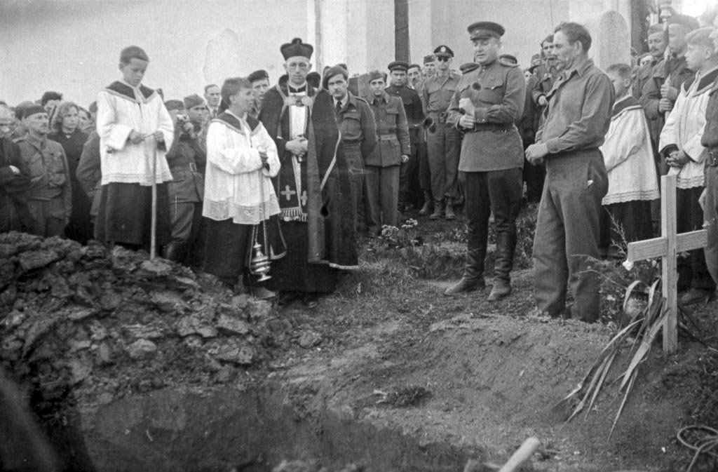 Pogreb ponesrečenih ameriških pilotov, Vojna vas pri Črnomlju, 2. april 1945. Foto Franjo Veselko.