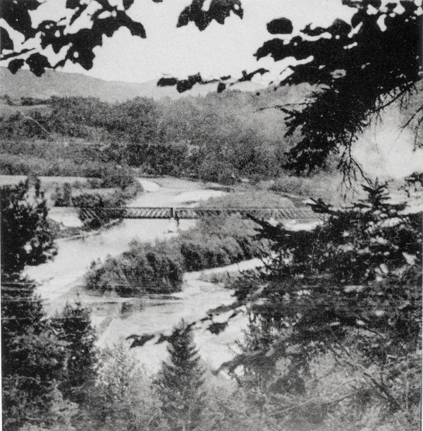 John Phillips: Litijski železniški most, ki prečka reko Savo na glavni progi iz Zagreba v Ljubljano, je bil cilj partizanskega napada. Dim na desni strani prihaja iz goreče hiše po zračnem napadu. Zavezniška letala, ki so delovala v koordinaciji s partizani, so bombardirala nemške vojake znotraj mesta in partizanom prepustila opustošen most, 20. april 1944.