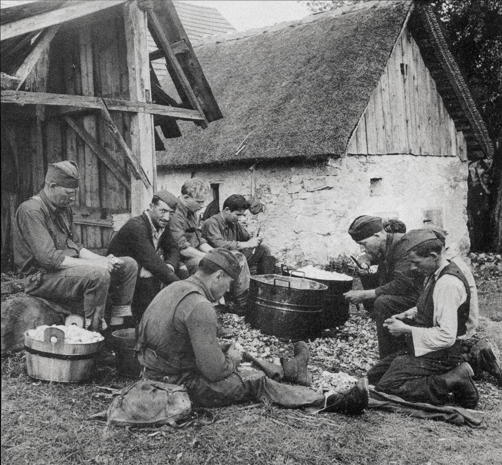 John Phillips: Kuharji pripravljajo hrano borcem pred napadom na železniški most pri Litiji, september 1944.