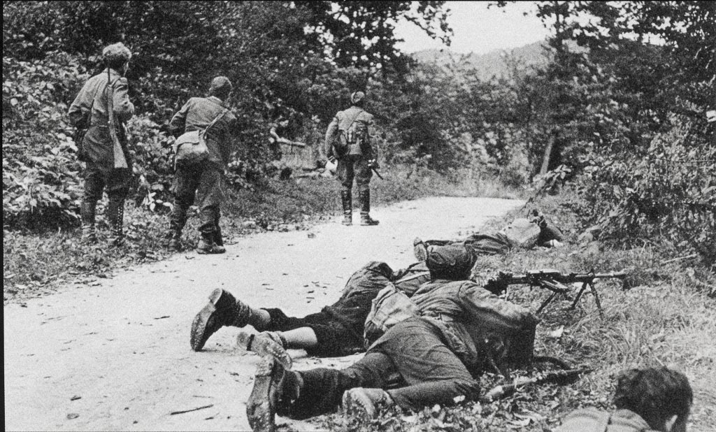 John Phillips: Borci Gubčeve brigade napadajo sovražnikove utrdbe ob železniškem mostu pri Litiji, 20. september 1944.