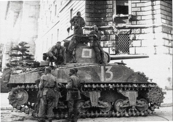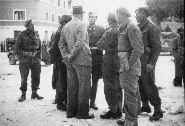 Pogovor med Novozelandci in partizani, Trst maja 1945. Foto Mario Magajna. Narodna študijska knjižnica Trst.