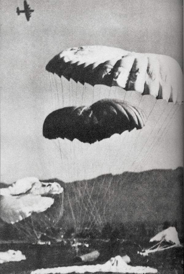Zavezniška pomoč partizanskim enotam na območju 4. operativne cone, 1944. Foto Jože Petek.