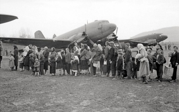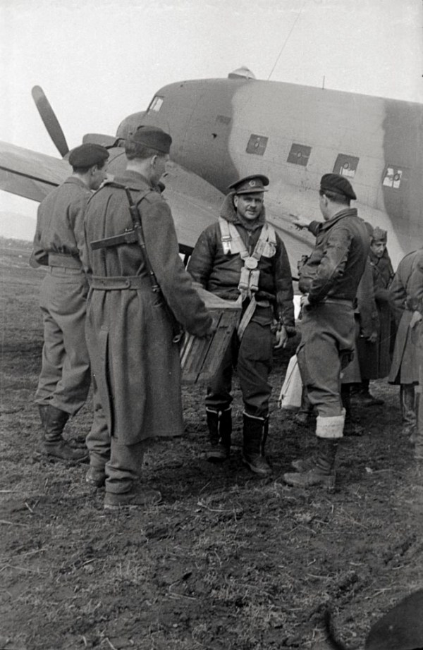 9. Prevoz civilnega prebivalstva z zavezniškimi letali v osvobojeno Dalmacijo, Krasinec v Beli krajini, marec 1945. Foto Maksimilijan Zupančič.