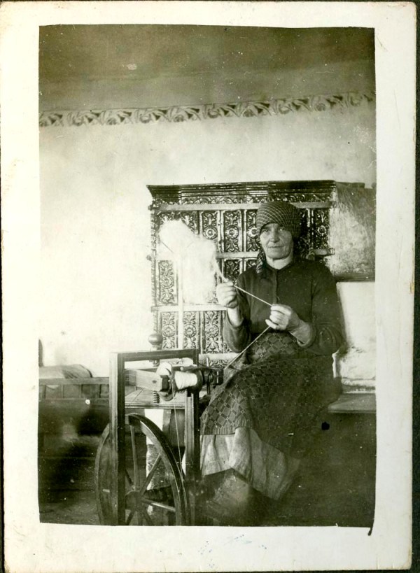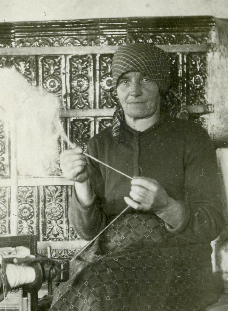 Neverjetno lepo oblikovane pečnice z bogatim starinskim reliefom, ženska pokrita na marinko, pameten pogled, izkušene roke, star kolovrat- idila ali le bitka za obstoj? … Zgradešana – zmikana – volna na preslici je čista in rahla, spretna roka pa jo suka, tanjša med prsti in oblikuje enakomerno debelo trdno nit.