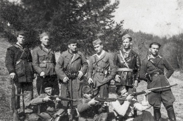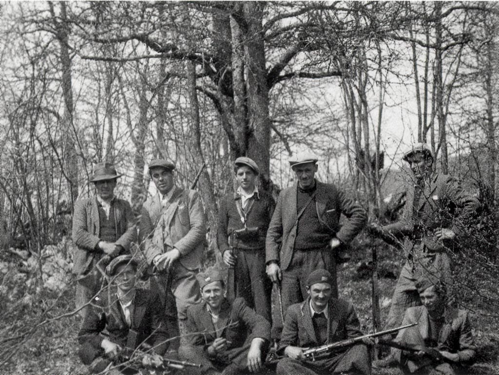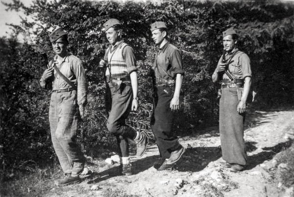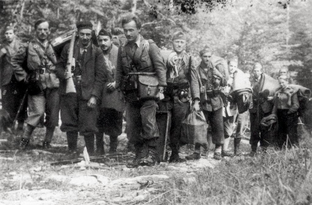 Štab 3. grupe odredov med italijansko ofenzivo na pohodu na drug položaj, Travna gora julija 1942. Foto Jule Sočan. To je ena izmed redkih fotografij partizanov med italijansko ofenzivo.