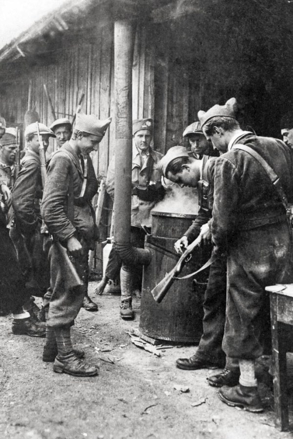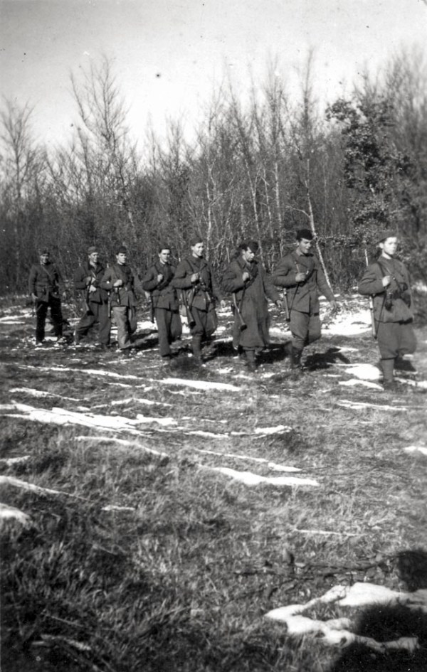 Borci Kočevskega bataljona v Koprivniku, spomladi 1942. Foto Jože Kotnik. Kotnik je zaradi pomanjkanja foto-materiala svoj fotoaparat predelal, tako, da je namesto 8 posnetkov napravil 16 posnetkov. Fotoaparat hrani Pokrajinski muzej Kočevje.
