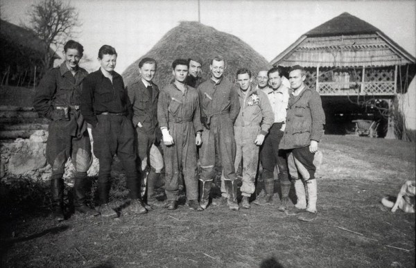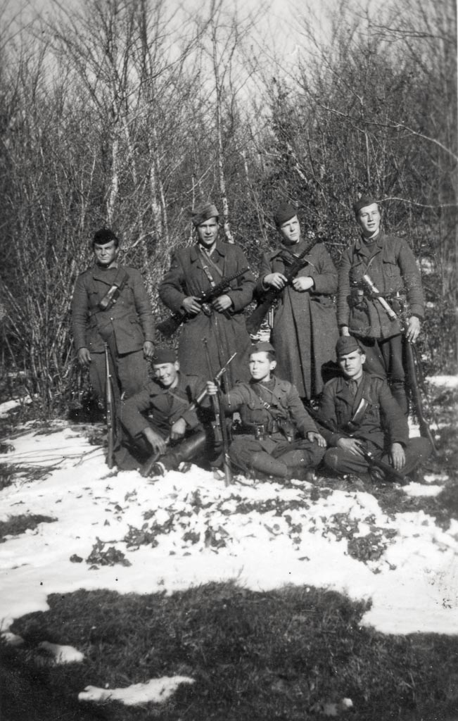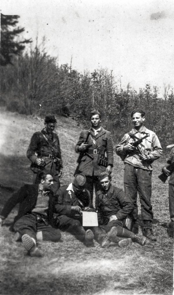 Po kapitulaciji Italije, kurirji postaje P-3. Na tleh v sredini sedi 15-letni kurir Jernejček. (Arhiv NMPo)