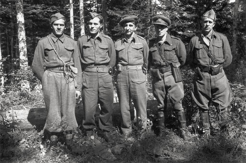 N.N. Anglo-ameriška zavezniška misija pri partizanskih enotah, v sredini je vodja britanske misije William Jones, Kočevski rog avgusta 1943.