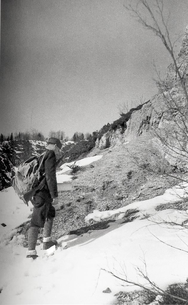 Miroslav Jež-Vanjo, politdelegat in kurir relejne postaje P-4a, fotografiran na Srnjakovem vrhu aprila 1944. (Arhiv NMPo)