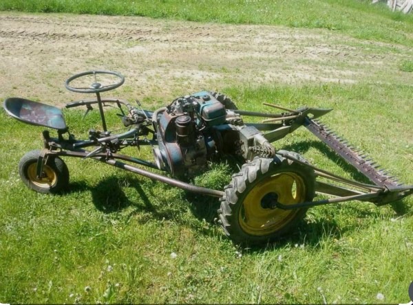Če tako pogledaš, ni velike razlike med samimi kosilnicami. Vse so približno enake, razlikujejo se le v drugačni postavitvi ročic ali motorja, princip pa je enak. Le da je imela ta čisto pravi volan, kot pri avtomobilu. Ko so jo sovaščani prvič videli, so se v glavnem vsi strinjali, da je ta z ročnim volanom mnogo boljša kot z nožnim. Vsakemu, ki to trdi še danes, bi predlagal, da naj najprej poskusi, potem pa naj primerja. Saj sama vožnja ni problem, prav udobno je, če ni več lufta kot toliko, da te nosi z ene strani ceste na drugo, in tudi med košnjo ni problema. A ko je treba na koncu travnika obrniti, ti naenkrat zmanjka rok. Vsak, ki je kdaj kosil s kosilnico z vozičkom ve, da jo moraš, ko prideš do konca, med vožnjo običajno obrniti za 180 stopinj. Pri tem z obema rokama primeš za ročaja in ju pritisneš navzdol, da gre greben po zraku, z nogama pa krmariš. Tu pa imaš eno roko za greben in eno za volan, noge pa ti med tem trepetajo ali boš med plapolanjem grebena gor in dol pri vožnji čez jamlč in grvine zvozi ovinek ali te bo kosilnica kje odložila. Taka vožnja me je doletelo šele po nekaj “na roko” pokošenih travnikih, saj nisem od Osredka naprej do takrat še nikoli kosil z vozičkom.