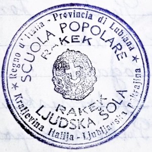 Na italijanskem žigu Občine Rakek je opazil, da piše »Kraljev Italija«. To je komentiral kot šlamparijo, ker bi bilo za preostale tri črke »ina« še dovolj prostora in tudi piko, če gre za okrajšavo. Rakek se je v italijanščini med obema vojnama imenoval tudi Racche, Recchio ali Radura. Na italijanskem šolskem pečatu ni našel napak.