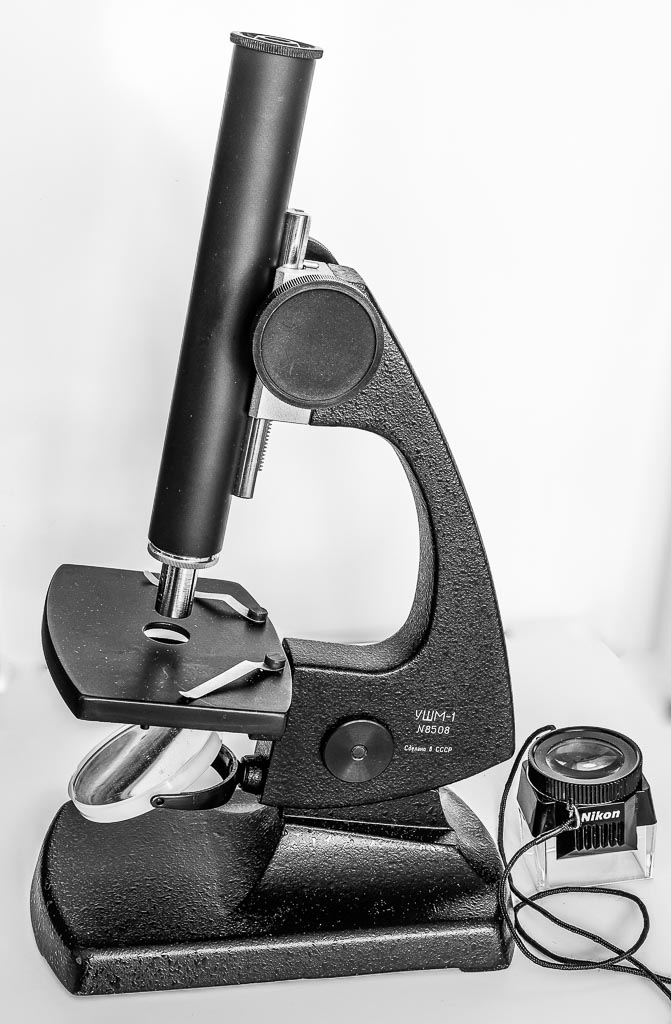 Imel sem majhno Nikonovo lupo za pregledovanje, a zame ni dovolj povečala. Zato sem parkrat uporabil sovjetski mikroskop UŠM-1, ki sem ga nabavil za zmerno ceno v trgovini Kemoservis-fotomaterial na (današnjem) Kongresnem trgu leta 1986. Zaradi izredno visoke inflacije je bilo takrat treba jugoslovanske dinarje takoj porabiti (ali pa jih na črnem trgu zamenjati v nemške marke, avstrijske šilinge …). Tako sem kupil šolski mikroskop. Inflacija je bila tako hitra, da trgovine pogosto niso mogle dovolj hitro višati cen in je bilo zato mogoče nekatere manj prodajane stvari nabaviti zelo ugodno.