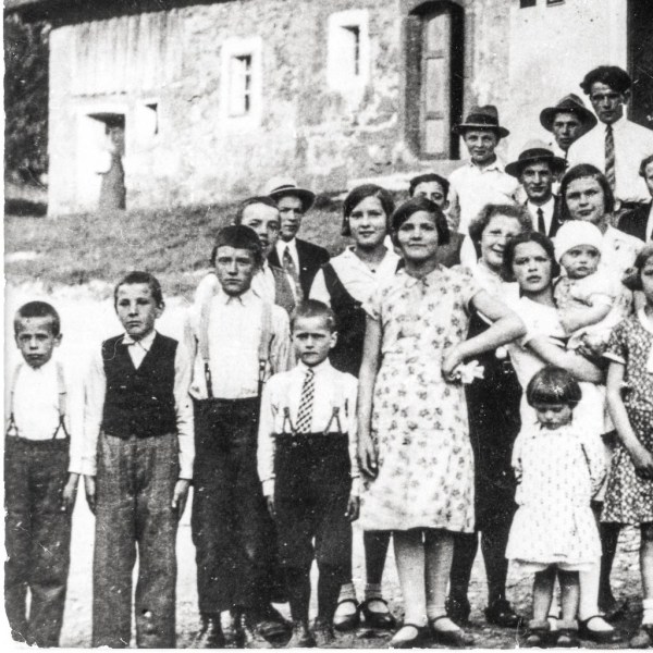 Slika je nastala leta 1933 v Žerovnici pri Cerknici pred Hribarjevo hišo.