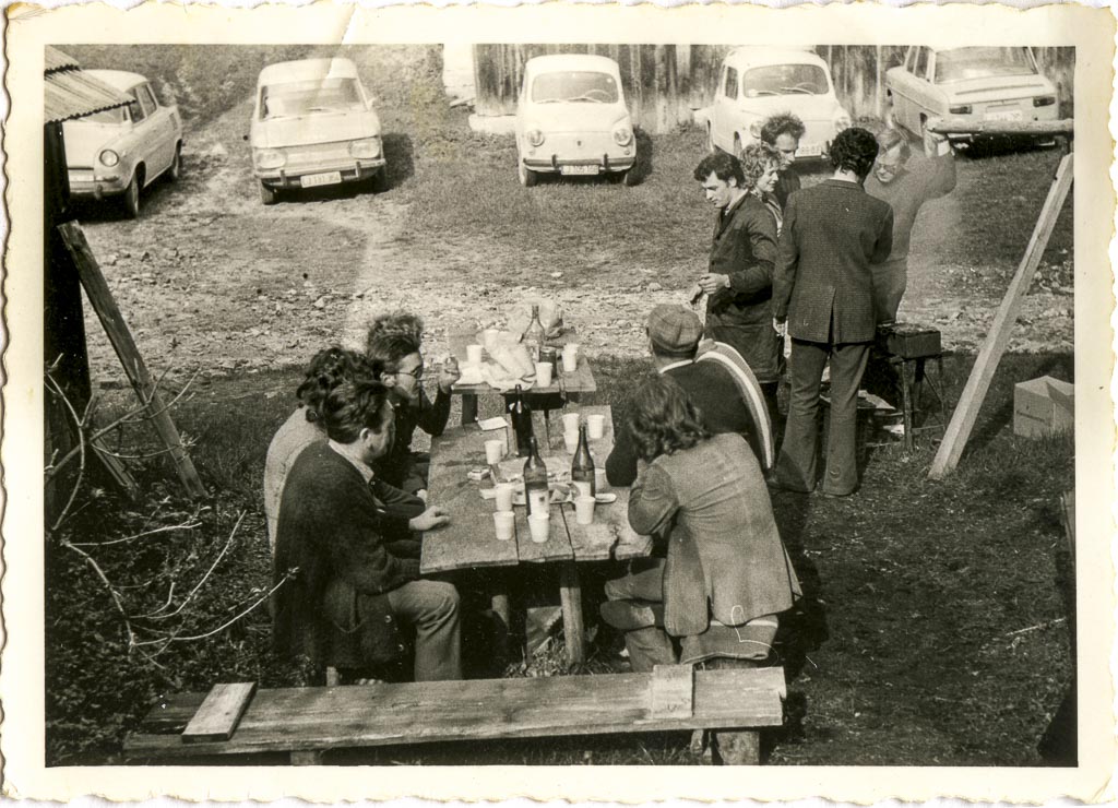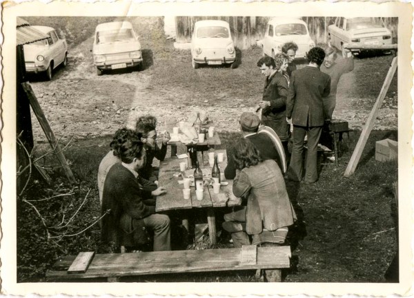 Zanimiv je naš takratni avtopark. Škoda, NSU Prinz 1000, dva Fičota, in Renault 10. Samo da se je dobilo za dinarje. Pa kako lepo smo jih parkirali na pikniku! Kot na sejmu Pod lipco v Ljubljani. Škode so prihajale kot blagovna menjava s Češkoslovaško, Prinze so nekaj časa sestavljali v Sarajevu, Renaulte v ljubljanskem Litostroju, Zastava 750 – Fičo je bil pa tako ali tako zakon. Jaz sem tisto pomlad prav Pod lipco od lastnika iz Hrastnika kupil rabljenega Fičota – na sliki je tretji z leve. Dobil sem reg. št. LJ* 105-168. Jeseni sem šel k vojakom, prej sem Fičota odjavil in me je tako počakal doma v garaži v skednju. Z novo reg. št. LJ* 174-312 nas je po mojem prehodu domov naslednjo jesen temeljto zglancan peljal k poroki v Koper. Leta 1979 so ga pri Zastava avtu v Ljubljani še vedno radi vzeli v račun po principu “staro za novo”. Družina se je večala, gradili smo hišo in omislili smo si novo Zastavo 101 Comfort. Kakšen napredek!