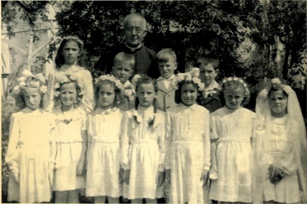 Na sliki so prvoobhajanci iz Grahovega z župnikom Janezom Jalnom.