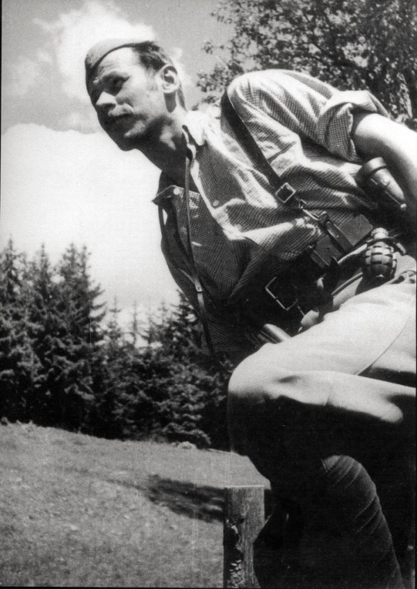 Tipična propagandna fotografija slovenski partizan, 1944, foto Marijan Masterl (Loški muzej Škofja Loka).