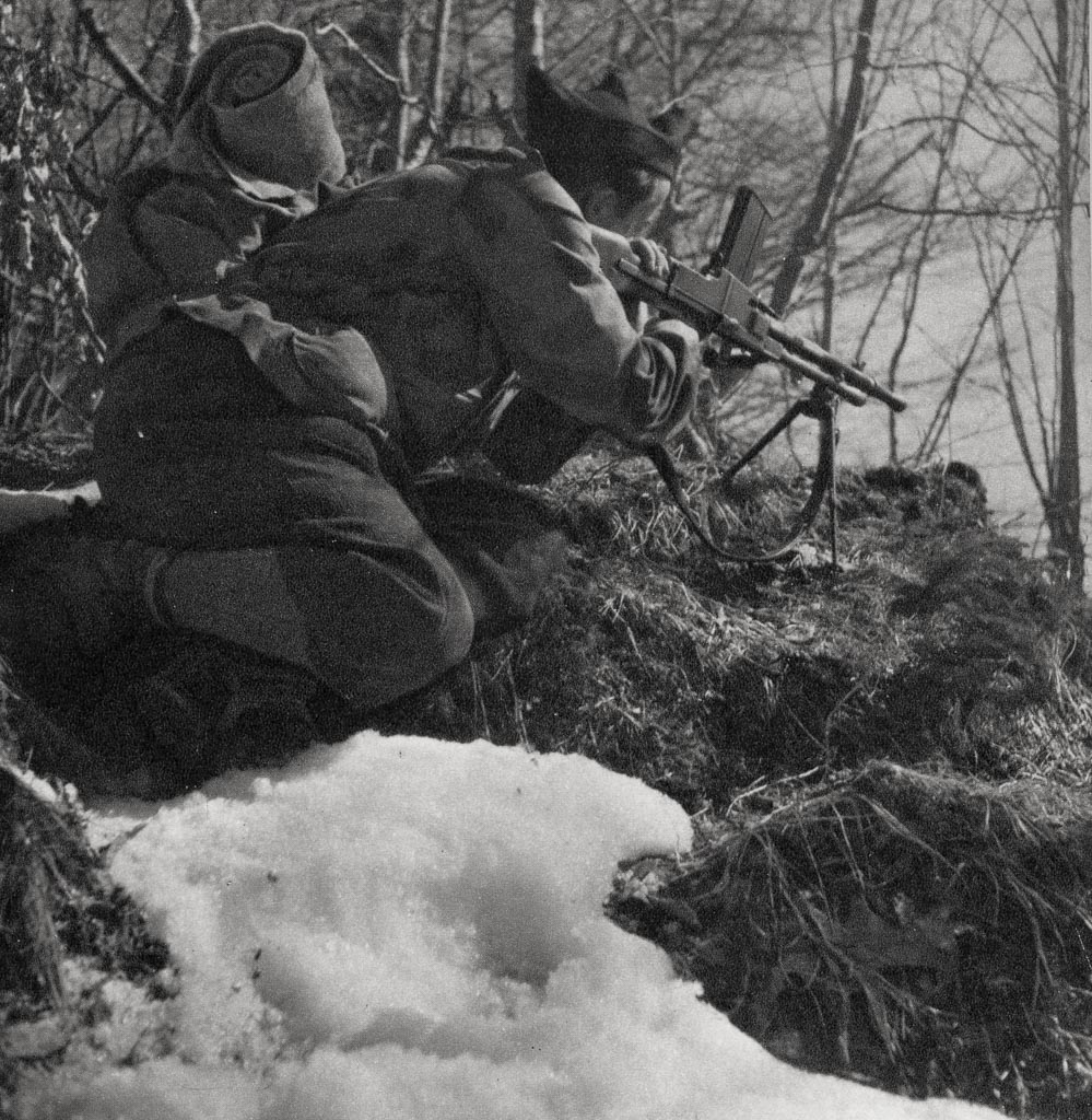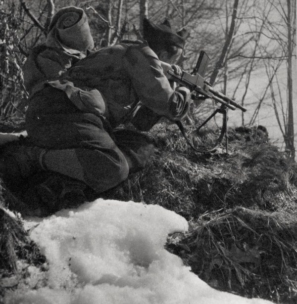 Gorenjski partizan z zaplenjeno strojnico, Jelovica 1941 – 42, foto Slavko Smolej.