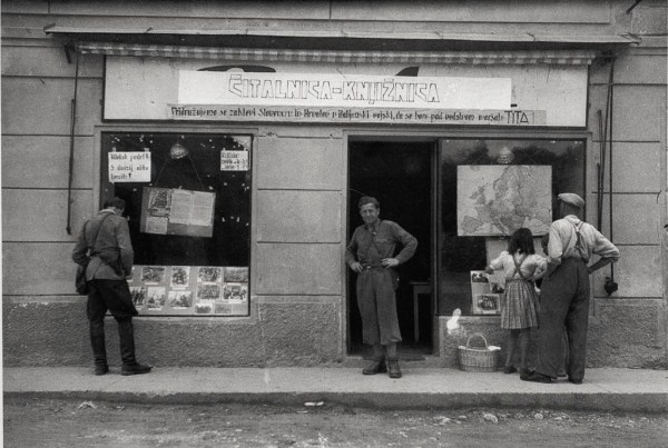 Fotografska razstava v izložbi ljudske čitalnice v Črnomlju 1944/45, foto Edi Šelhaus.
