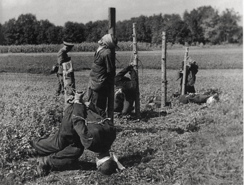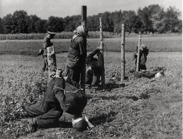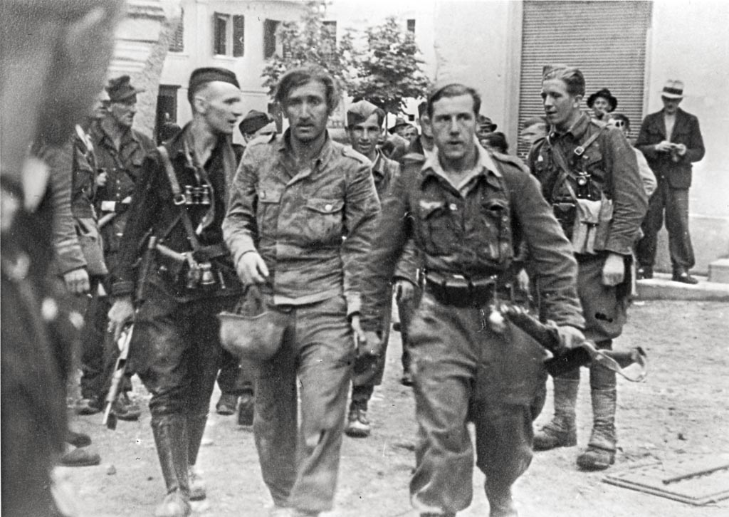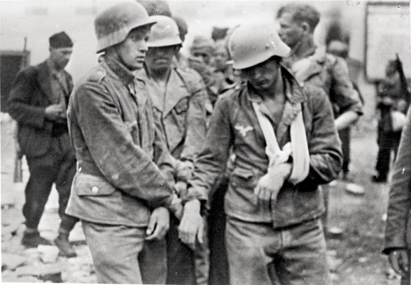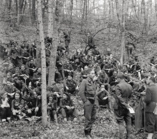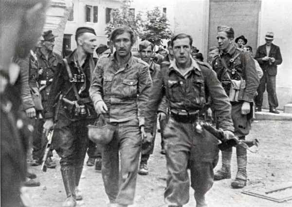 Ujeti nemški vojaki po bojih za Ljubno, Šlandrova brigada, 31. julija 1944, foto Stane Lenardič.