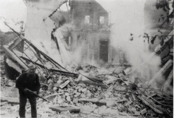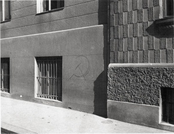 Srp in kladivo na zidu hiše v Gledališki ulici v Ljubljani, 5.10.1941, foto Jakob Prešeren.