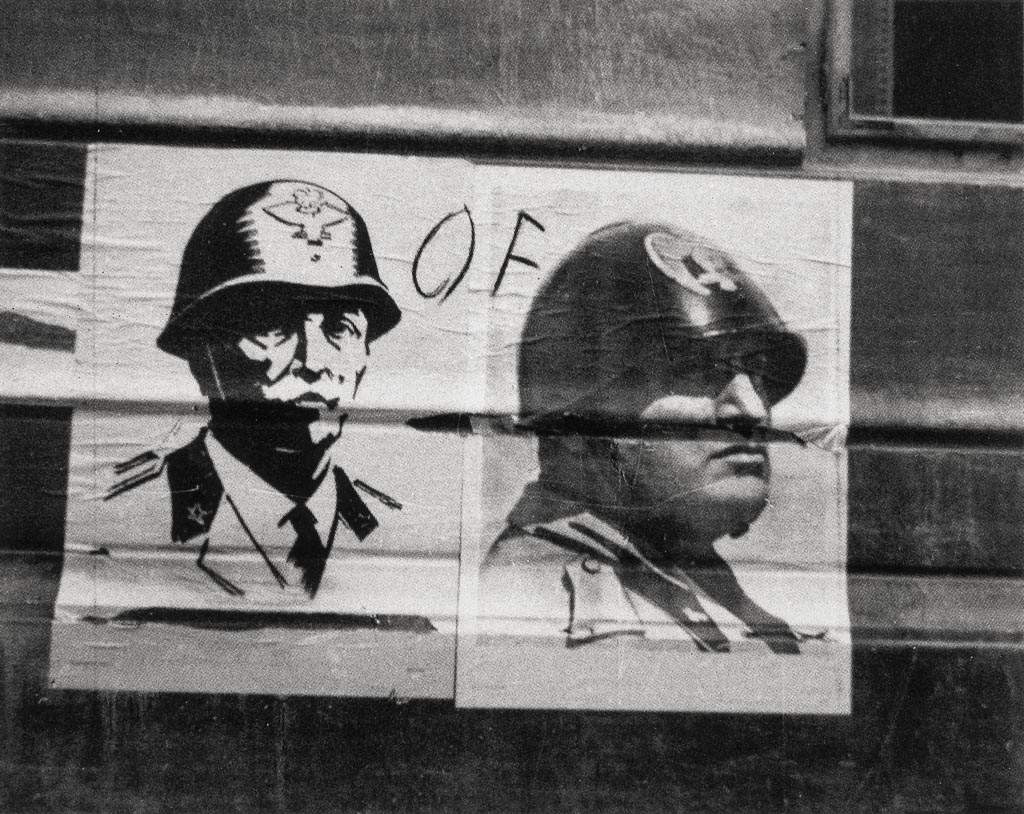 Znak OF na italijanskem plakatu, Ljubljana, oktober 1941, foto Miran Pavlin.