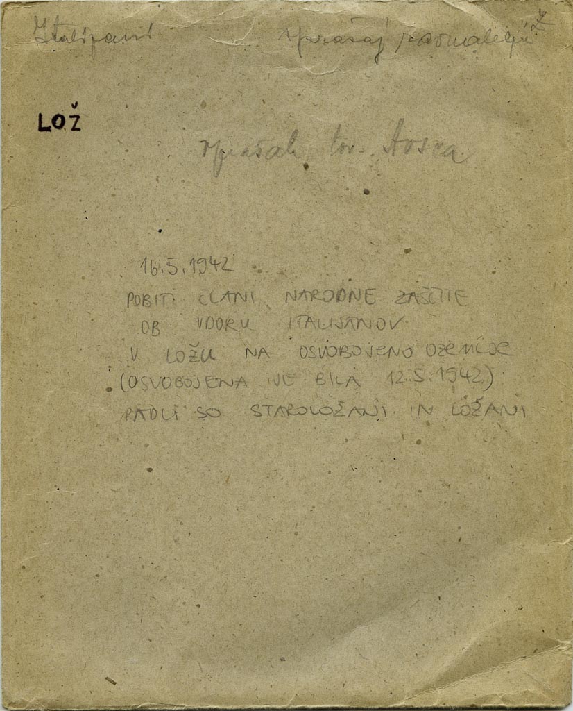 Pri nekaterih so Italijani našli osebne izkaznice, zato so izropali in požgali tudi njihove domove. Naslednji dan so v Ložu zgorele hiše Marjete Ule ( Ulkova), Zabukovčeva (Fižolkova), Lavričeva ( Pekova) in Grahova (/Germova?) (Naulakova). Od teh gorečih hiš sta se vneli še Juvančičeva in Zajčeva ( Šlosarjeva). Ob tem je jasno, zakaj so partizani ob prisegi NOV (praviloma?) uničili osebne dokumente in uporabljali le izmišljena imena.