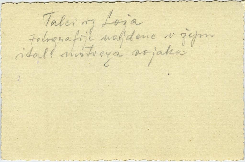 Zapis govori o več pri italijanskem vojaku najdenih slikah, izročilo (A. A.) pa le o eni, ki je morda tista najbolj obrabljena, objavljena zgoraj. Žrtve vdora so padle v boju oziroma ob napadu, niso bili talci kot piše na hrbtni strani te slike, tako da se napis precej verjetno ujema s sliko štirih ustreljenih mož na travi.