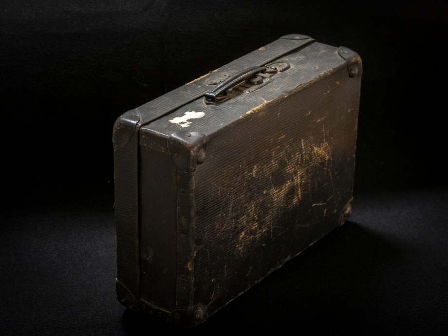 Kartonast kovček, takrat so bili samo takšni. Potovalk in polivinil vrečk še niso iznašli.