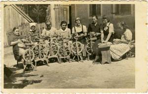 Zakaj je pričujoča fotografija nastala poleti in kdo je potreboval tako sliko, ni znano. Mogoče so bili na terenu sodelavci SEM, saj je nastala še pred letom 1950. Obstajata dve podobni fotografiji, le malo zamika levo ali desno. Ena imamo pri Kovačevih, eno je pa imela soseda, Kešlanova Ivana, po poroki jo je vzela s seboj na Unec, sedaj jo ima njena hčerka. Dekleta in žene so zbrane iz cele vasi. Že samo po kolovratih bi mogli soditi, katere so sosede, saj so jih šle skupaj kupovat. Od nas so hodili kolovrate kupovat na Radlek, verjetno pa tudi kam drugam. Kolovrat je bil včasih sestavni del bale, ki jo je nevesta pripeljala k hiši.