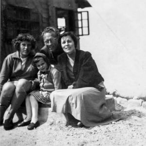 Fotografija je nastala poleti leta 1958 ali najkasneje leta 1959 pred Zoisovo kočo na Kokrškem sedlu. Takrat sem imela nekaj več kot štiri ali največ pet let. Spomini sčasoma zbledijo, vendar še pomnim, da je bil to zame pomemben dogodek. Na sliki je moj stric Uroš Domicelj, nečak Maksa Domicelja z Rakeka, v daljšem krilu njegova žena Ljubica – moja teta, sestra mojega očeta, njuna soseda Marjeta Grmič in jaz. Avtor fotografije ni znan.