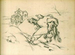 Ilustraciji Lojzeta Perka sta povzeti iz Knjige Martin Krpan, ki je izšla 1943 v Ljubljani. Zaradi kršitve ob začetku vojne razglašenega kulturnega molka, Lojze Perko po vojni ni doživel časti, ki si jih je s svojimi deli zaslužil. A kako naj bo umetniku prepovedano ustvarjanje, njegovo poslanstvo? Sicer pa je prav ta knjiga z njegovimi ilustracijami Slovencem gotovo pomagala preživeti tisti hudi čas.