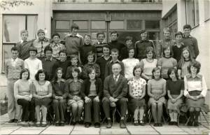 Učenci 7.c razreda slikani na znanem mestu pred šolo v šolskem letu 1975/76. Z njimi je njihov razrednik, učitelj likovnega pouka Konrad Knez. Številčno imajo močno premoč fantje, saj jih je kar 20, deklet pa le 13. So bila dekleta pa toliko glasnejša, da ni bilo občutiti moške nadvlade.