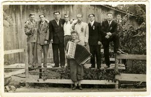 Sliko hrani Joži Novak, ki jo je podedovala od mame, ker je na njej tudi njen brat Jože Prevec, Jožičin stric. Ne vemo pa, kdo jo je posnel niti natanko kdaj – le da je bilo poletje lahko ugibamo. Po spominih in oceni starosti fantov, ki jih imajo na posnetku okoli dvajset, lahko domnevamo, da je slika nastala okoli leta 1950 ali pozneje. Fantje stojijo na okrašenem odru pred leseno steno gospodarskega poslopja, ki pa ga nismo prepoznali. Je bilo na veselici – mogoče pri Tomšču oziroma Magušarju sredi Iga vasi – ali kje drugje?